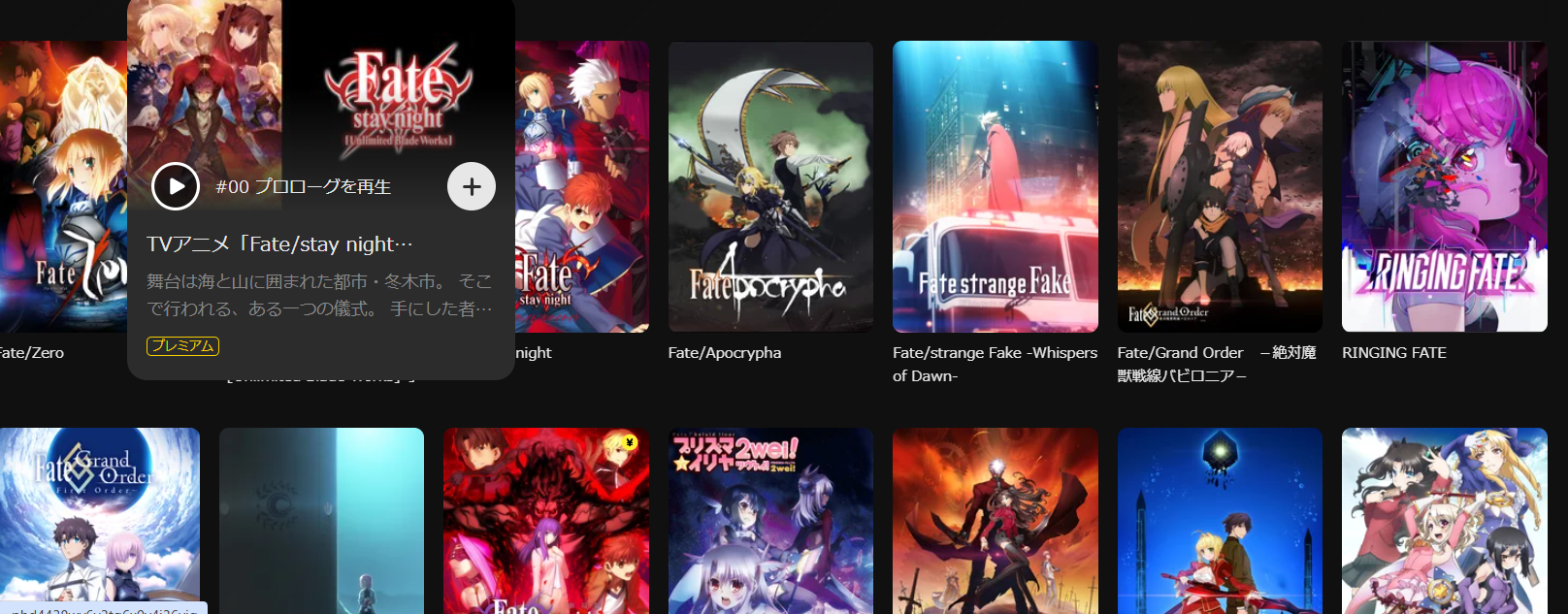 筆者的にうれしいのって、fateのUBWがあったこと(遠坂凛ルートのアニメ版)。これを機に、見たかったので全話見ることができました。