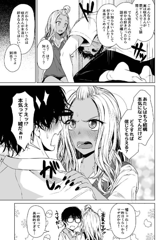 黒ギャルJKの咲月理佐(さつき・りさ)はテストがビリだった罰ゲームとしてクラスメートの陰キャ男子有嶋到也(ありしま・とうや)に告白をすることになってしまった。