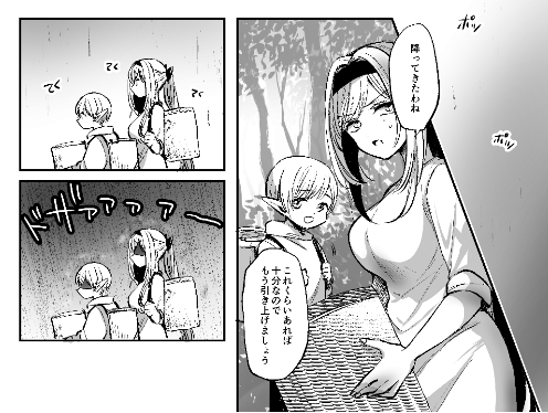 ふたりは雨をしのげる場所に避難して、なんとか暖をとります。