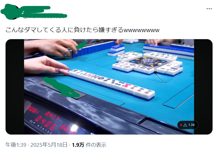 もしかしたら本人は周りに誘われて…とかで、そこまで勝ち残る気なかったのかもしれませんが、X上でコアな麻雀ファンに目を付けられて、「お遊戯会レベル」と酷評されていました。上のステージに立つと、もっと言われてしまうのではと心配になります。