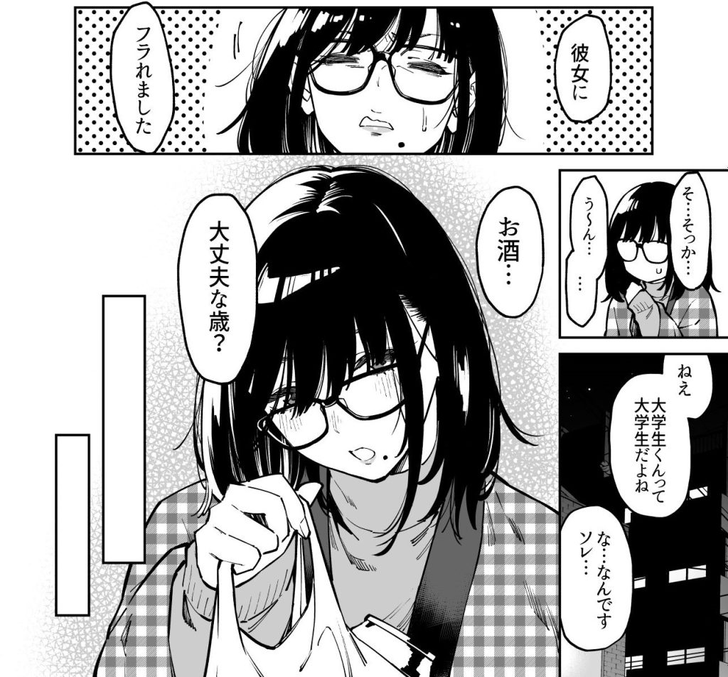 いつもボサボサの髪で酒くさく、そんな目で見た事なかったお隣さんがすごくえっちなお姉さんだった─という一人暮らしの夢を漫画にしました。